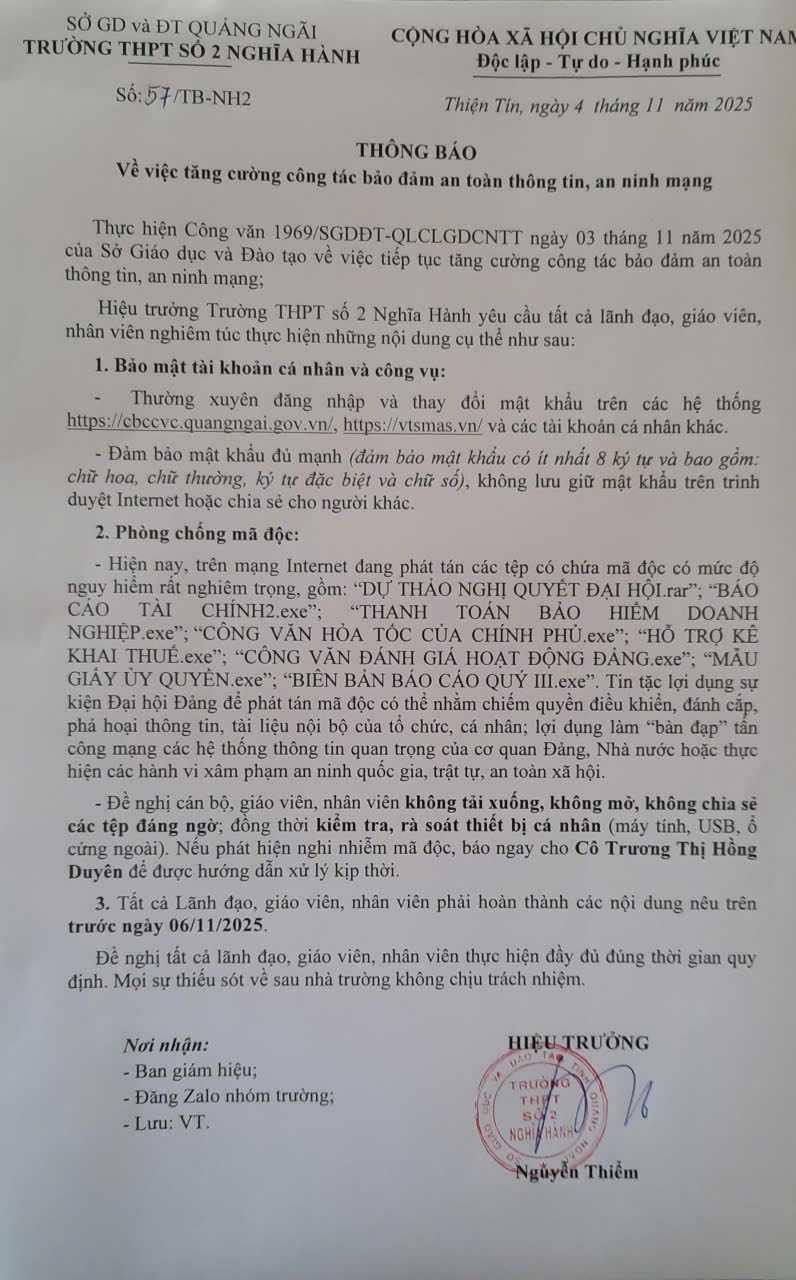 • THÔNG BÁO  Về việc tăng cường công tác bảo đảm an toàn thông tin, an ninh mạng